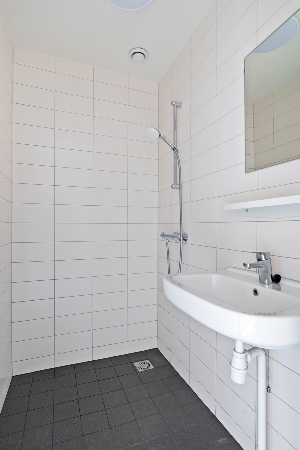 Binnen valt gelijk de eenvoudige, maar nette afwerking op. Geen overvloed aan moderne poespas, maar gewoon alles wat je nodig hebt – netjes en sfeervol. Plus: de doucheruimte is onlangs volledig opnieuw betegeld! Zo kun je fris beginnen in een badkamer die helemaal bij deze tijd past.