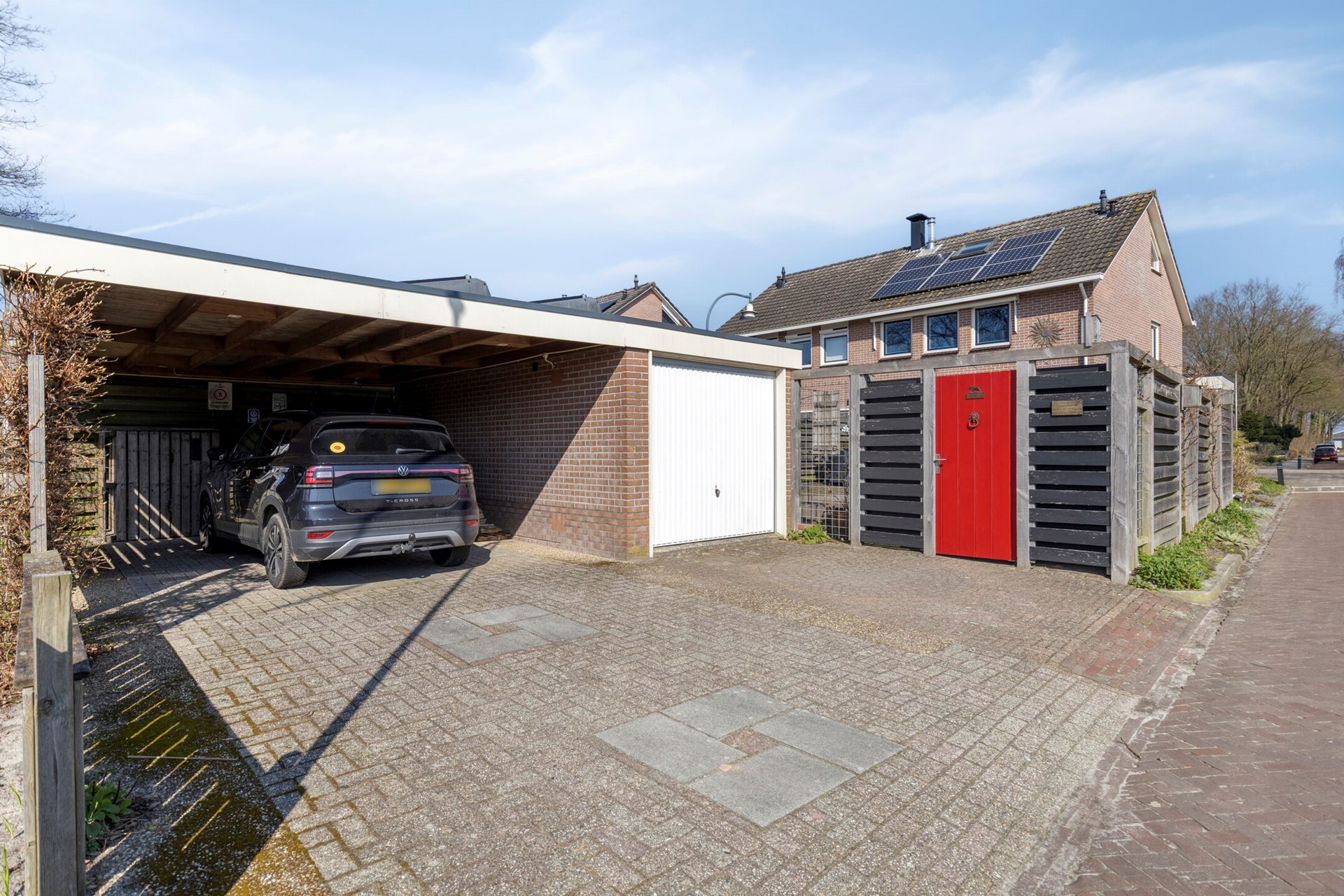 Bijgebouwde ruime carport en vrijstaande stenen garage.