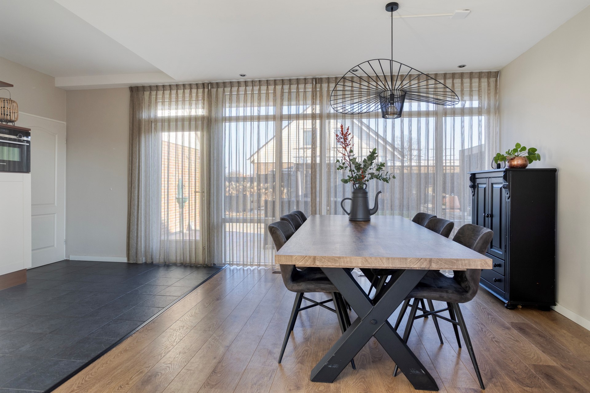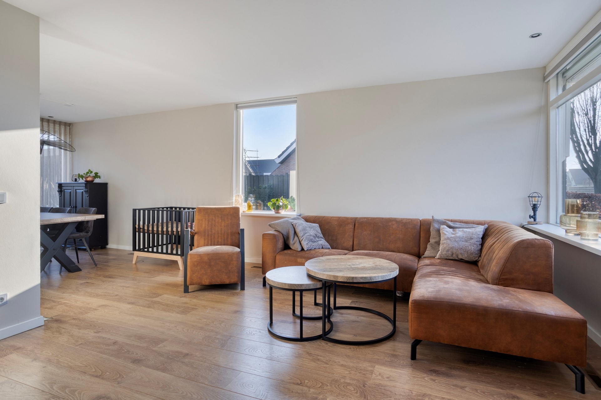 Binnen stap je een verrassend lichte en ruime woonkamer binnen. De grote raampartijen laten elke zonnestraal binnen en bieden een mooi uitzicht op de recent fraai aangelegde tuin. De aangrenzende keuken is modern en praktisch ingericht!